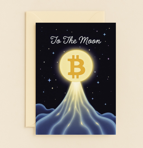 Bitcoin To The Moon Greeting Card with Shining Crypto Design