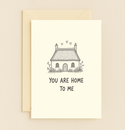 Romantic Greeting Card with Cozy Cottage Illustration